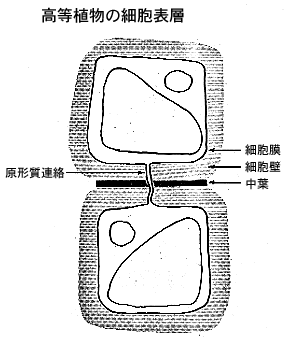 高等植物の細胞は、細胞壁に囲まれていて、それを通して外界や他の細胞との情報交換を行っています。