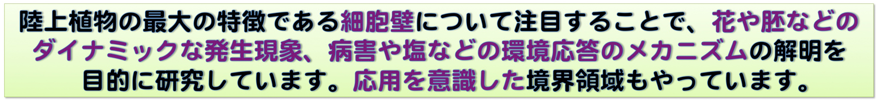 以上のテーマについて、あまり注目されてこなかった細胞壁を切り口にすることで新たな発見をすることが私たちのオリジナリティーです。