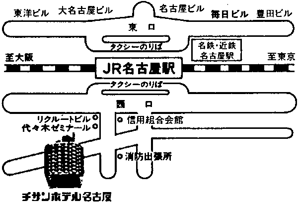 残念ながら、会場の周辺に宿泊施設はありません。各自で共済組合などの施設への宿泊予約をお願いいたします。地下鉄東山線沿線が便利です。また、通信16号でお知らせしましたように富士ツーリストに、割安のホテルを斡旋してもらっております。一応、申し込み閉め切りは7月9日(金)となっておりますが、部屋に余裕のある限り、できるだけ直前まで対応して頂くようにお願いしております。直接、下記の旅行社にお問い合わせ下さい。